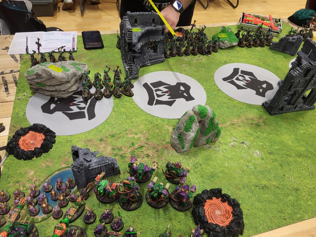 I was absolutely awful at holding points, my rough average over the 4 games I played were: 1 (out of 3 objectives), 1 (out of 4), 1 (out of 3) and 3 (out of 6). In comparison my opponents held 2,4,2,4, so I was just bleeding points constantly, especially from hold more. Basically I need to either be more assertive with the Stormfiends/Acolytes and hope the artillery can look after itself, or just get way more Clanrats and turtle but not really. Game is hard.