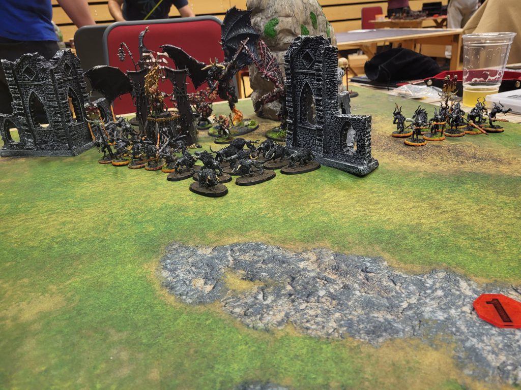 My third round was against another melee army. At this point there was literally no magic at all, but a ton of dispelling and general 'scary Khorne' stuff, including 3(!) Bloodthirsters. In this case, sitting back, slowly moving forward and just killing everything that wandered into the death zone kind of actually worked.