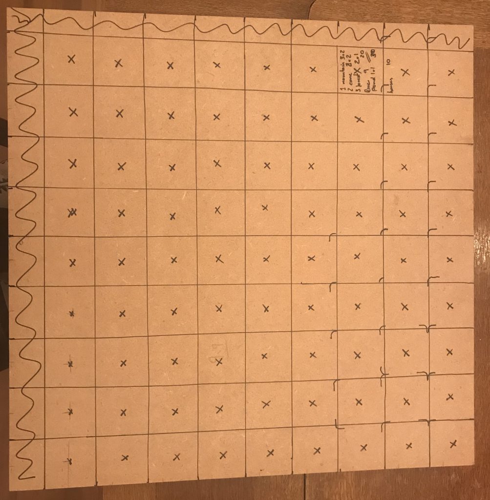 It was at this point I started feeling quite smug, got the MDF board out and started marking it up, only to find it was smaller than I thought and instead of a grid of ten tiles I had a grid of 9x9 with some extra space I'm sure I'll find a use for. With one or two major hills, a big forest and several buildings, this might actually be a doable project after all. Inspiration struck right as I was starting to put this article together - those crosses in the middle of each square? Magnets!