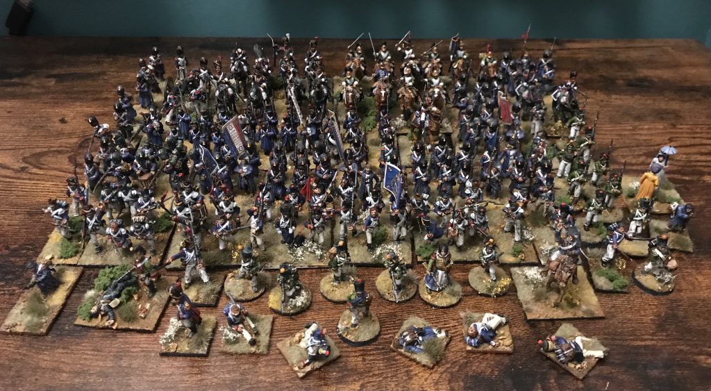 even ethnicity. Two units of horse and a gun (another three guns, the Victrix 1812 Artillery kit, are on the painting table right now), along with a plethora of officers, drummers, cantinieres and far too many eagles, have, just about, completed the 28mm force. While no army is ever completed, this is enough that once those 3 extra guns are done, it'll be an occasional model or unit. Since December 2021, there has never been a time without 28mm undercoated frenchmen under my monitor, and it'll be a blessed relief to only do some models when I vaguely feel like it! This is already by far the largest of my armies in 28mm scale, far outstripping anything I've got for other historicals or other, grimmer and darker, games.