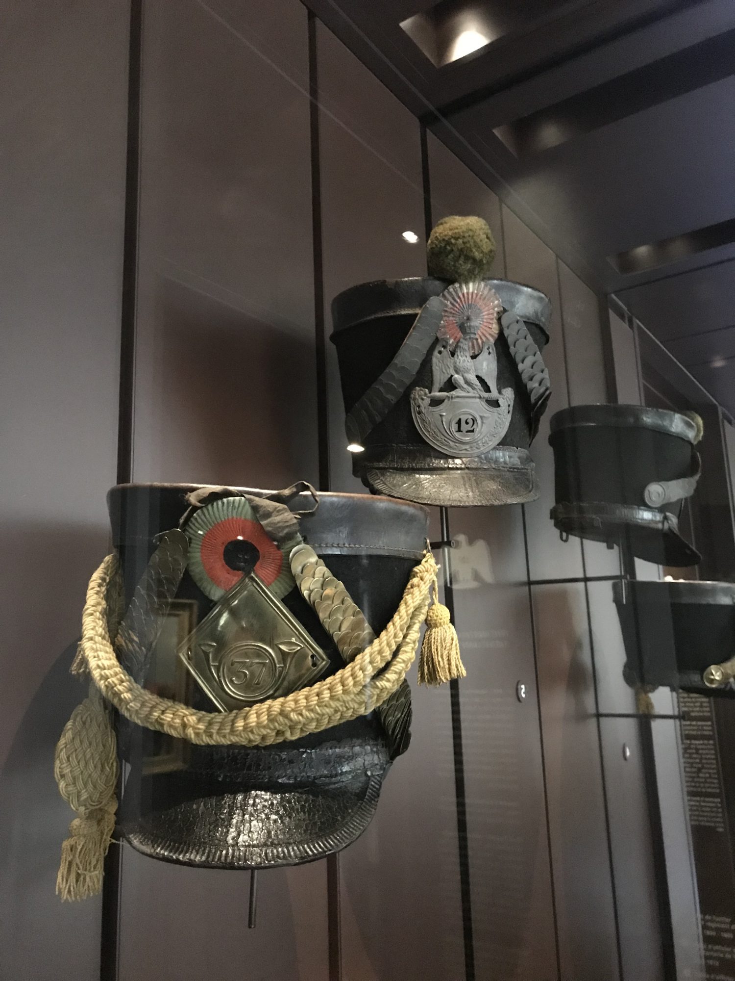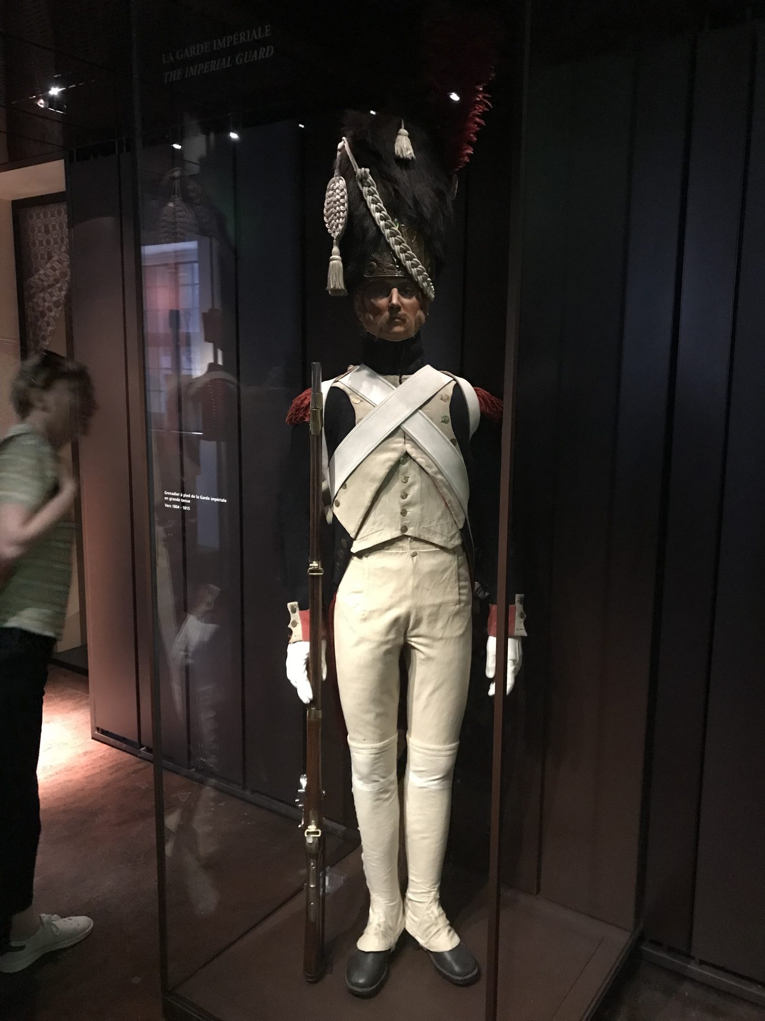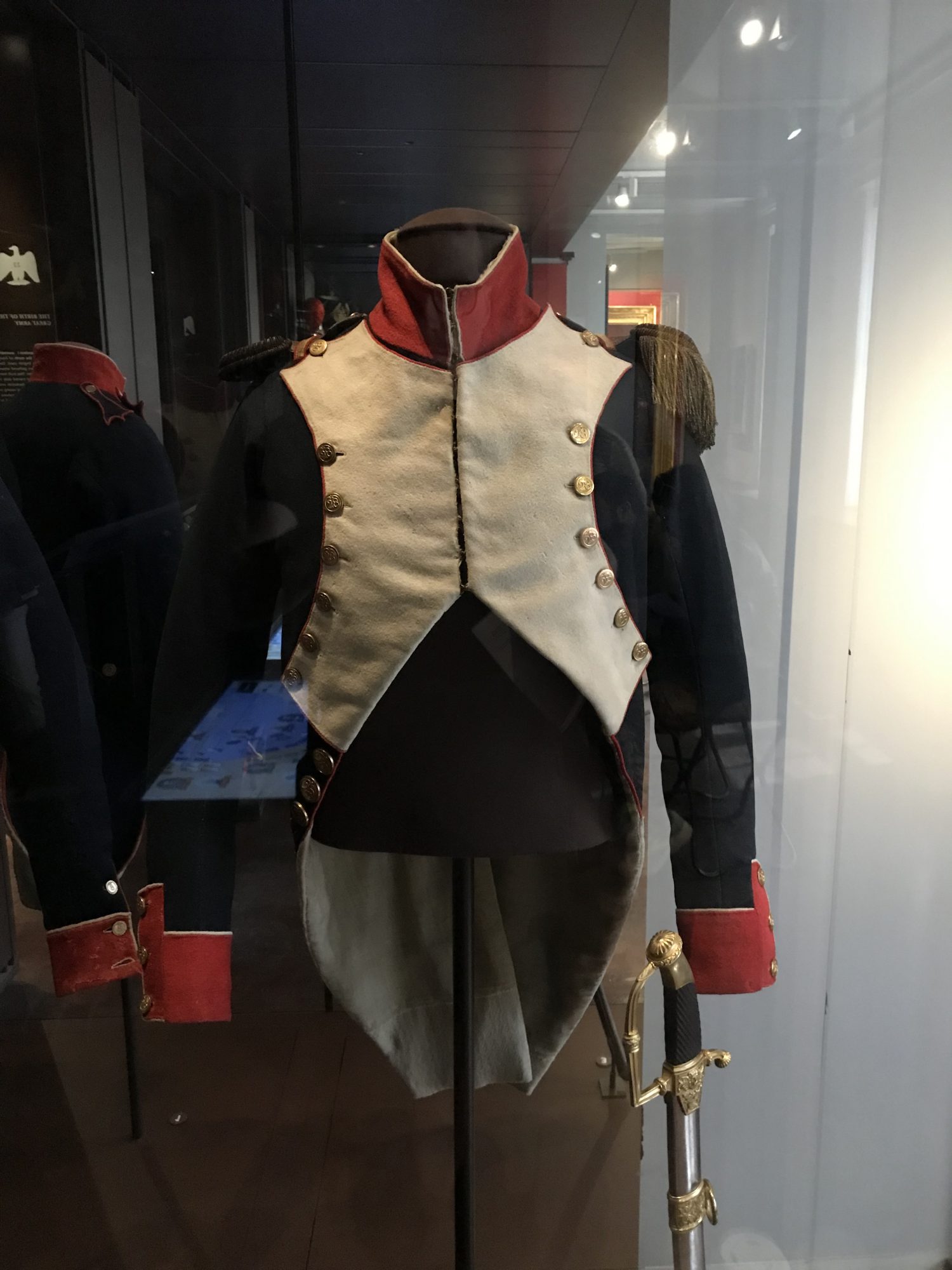 A fantastic reference collection for anyone painting frenchmen, but also a great comfort. Most of the line uniforms - and a lot of the guard - are miscoloured, faded, badly stitched, irregular and tatty. Not just because of age, strange curatorial choices in the 20th century and being moved around to avoid the various wars, fires and other calamities that Paris has faced, but because they were made that way. There's old buttons on new uniforms, there's non-regulation plates and shakos, even within regulation issues there's huge variation based on where things were made. Uniforms are made poorly, out of material that doesn't hold dye well, and these were the best ones on display! My takeaway from a full day staring at just the Napoleon galleries is this: