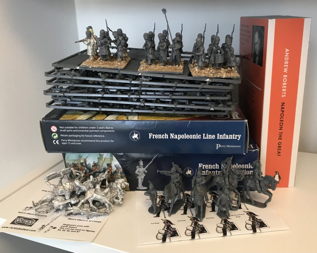 Perry metals (even getting the clippers and modelling putty out because is an army without some headswaps even really an army?), three boxes of Perry plastics - two line infantry and some Cuirassiers - three ebooks and one big fat book. All bought on the basis of enjoying painting 8 men, and without a rulebook, plan or particular knowledge of the army or period at all.