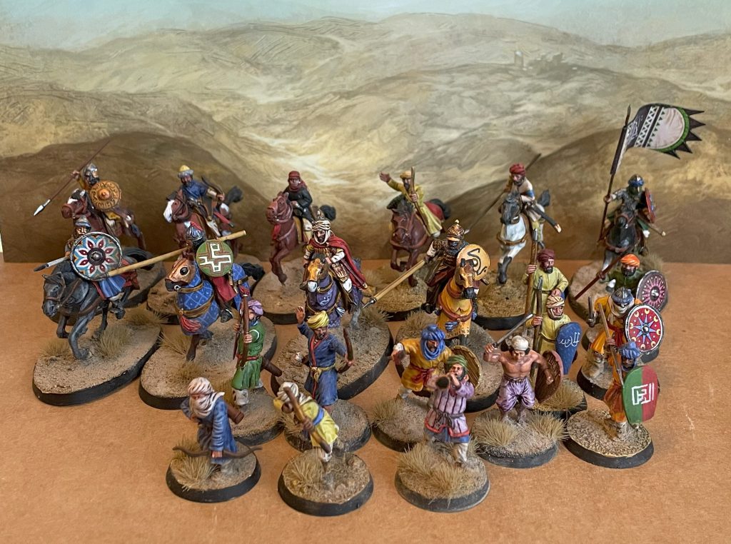 I currently have more than 20 points of Islamic models, in an army that could fit into Saracen, Moor and Mutatawwia battle boards. At most, I'd look to paint just a few more cavalry. The total fully painted stands at: