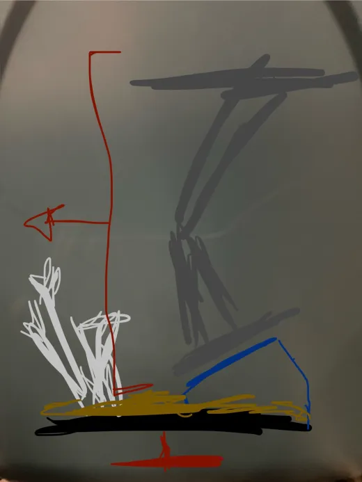 I should meet a shaman in a stone circle, or after being summoned via pibgorn, but instead it’s a slick, professional Zoom meeting room setup. There’s a waiting room, which gives me enough time to circle myself in knights, and scrawl another sketch or two of whatever this will become on my pad. I’m not sure why I’m here, but it would be rude to turn away now.