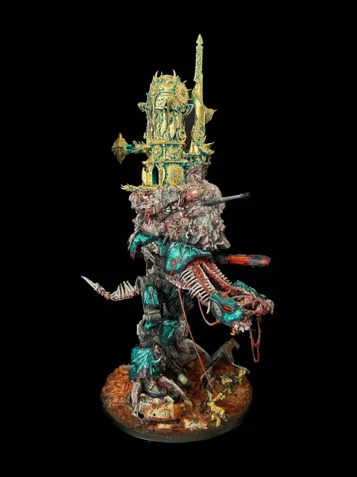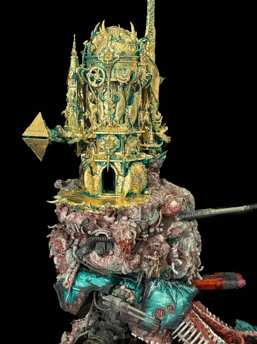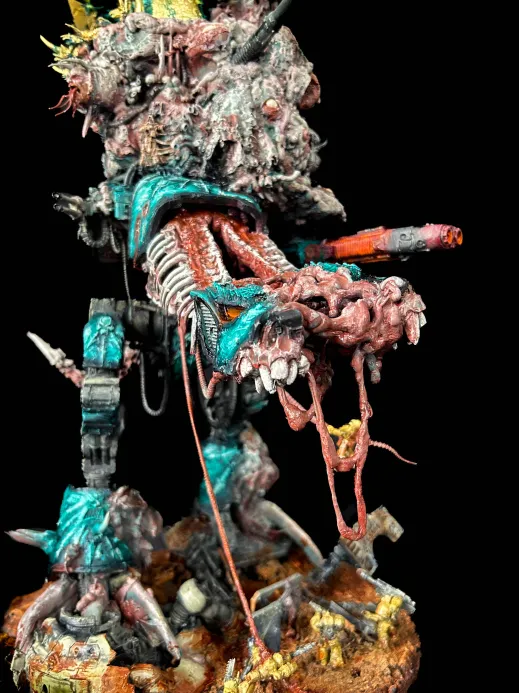 Who could? The large resin son community paints well, and does lovely things with LEDs, but beyond the hard graft of making a titan, few seem to channel madness and passion into resin to make something strange. I know a man who does. He has produced the definitive Warhound, the best model I’ve ever seen in the flesh, a work of terrifying, hideous art: Foetus Fidelis, the Child of Hope.