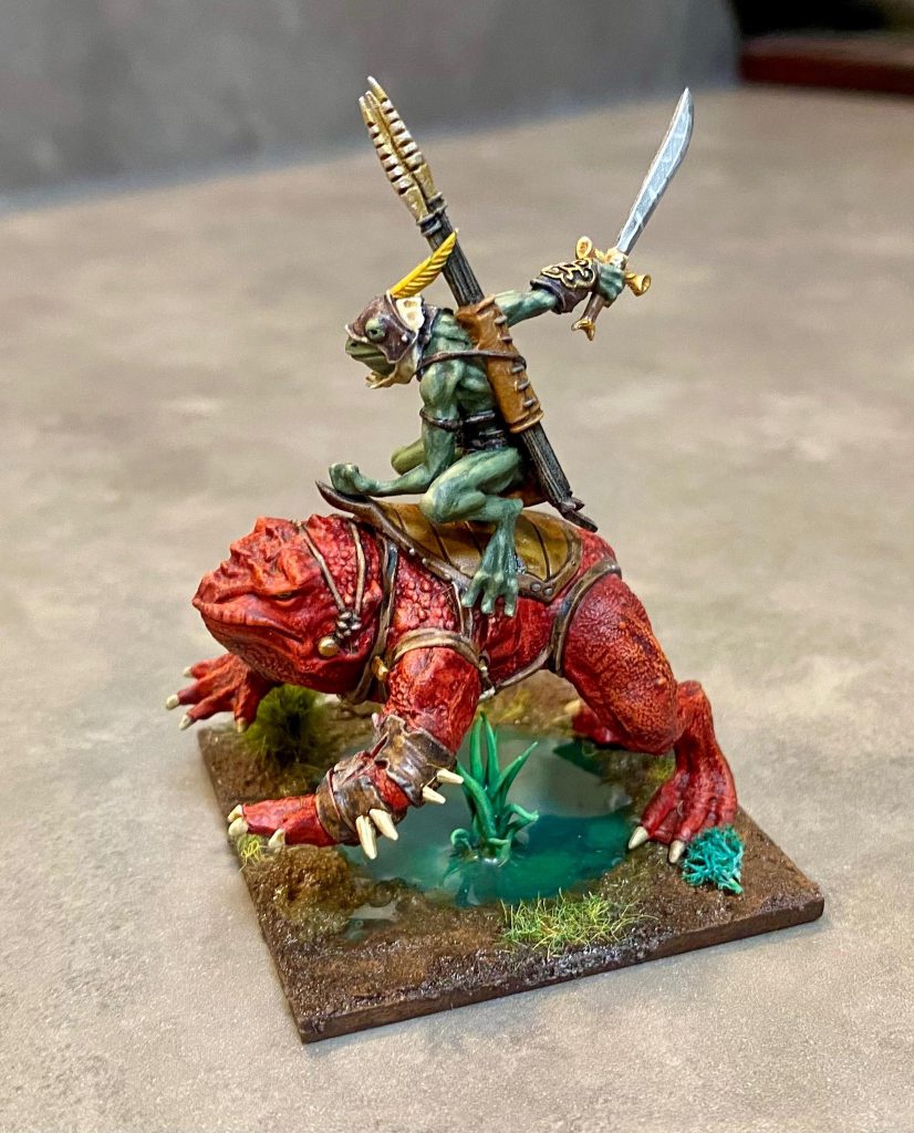 The King of Medu’Syth has an Aura that gives out Elite to Placoderms and Gigas; an exceptionally powerful aura for already powerful units. The King of Myrrhimm has Rallying (2) (which is like an aura?) for Dambuster units; turning those frogs on frogs into frogs on veritable juggernauts.