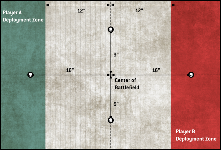 This mission does not have any special rules on its own, but does have a unique deployment zone and objective marker arrangement that make things a bit interesting. The mission-specific Secondary Objective appropriately called