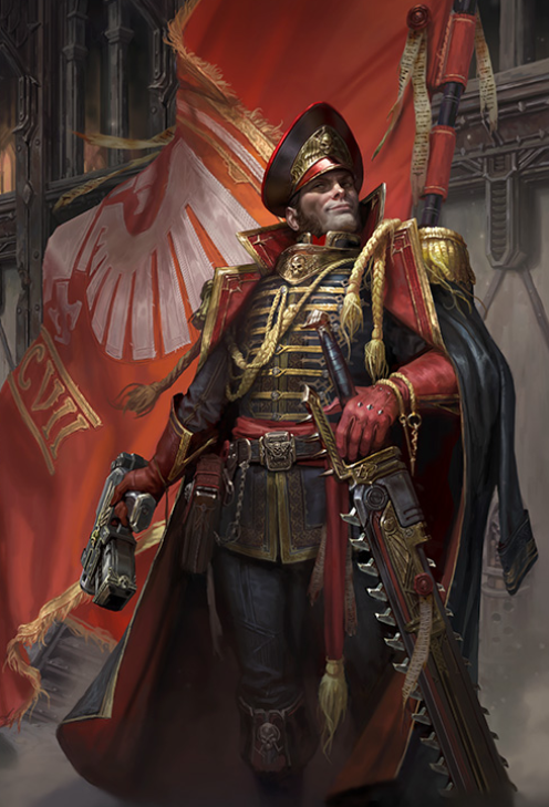 The man, the myth, the legend. Commissar Ciaphas Cain is the protagonist and main point of view character in his series (shocking, right?) and it’s through his recollections that each of the stories is told. Orphaned on a Hive World as a child, Cain is taken to a Schola Progenium (which is kind of like a 40k boarding school, right?) wherein he is trained to become a Commissar, although his test scores are thoroughly average, he only really excels in sports and fencing. Later, as a full-fledged member of the Commissariat, Cain is sent to a Valhallan Artillery regiment, an assignment with which a more heroically inclined Commissar might be disappointed, but not Cain. Artillery, you see, are often pretty far away from the thick of it, a fact that appeals greatly to his extremely keen sense of self-preservation. Unfortunately, as Cain prepares for a comfortable career of “rear-echelon obscurity”, heroism comes a-calling as the ship carrying his regiment comes under attack shortly after their arrival in the system. Cain and his attendant Jurgen hop in an escape pod, and after a period of drifting in space, crash-land on the Ork-ravaged world of Perlia. Primarily concerned with not dying, Cain and Jurgen nick an Ork Warbuggy and head in the direction of safety. Long story short, they end up reluctantly leading a band of refugees across the planet, encountering and dispatching Orks as they go, ultimately ending with Cain personally blowing away the Ork Warboss with his laspistol, birthing the legend of the heroic Ciaphas Cain.