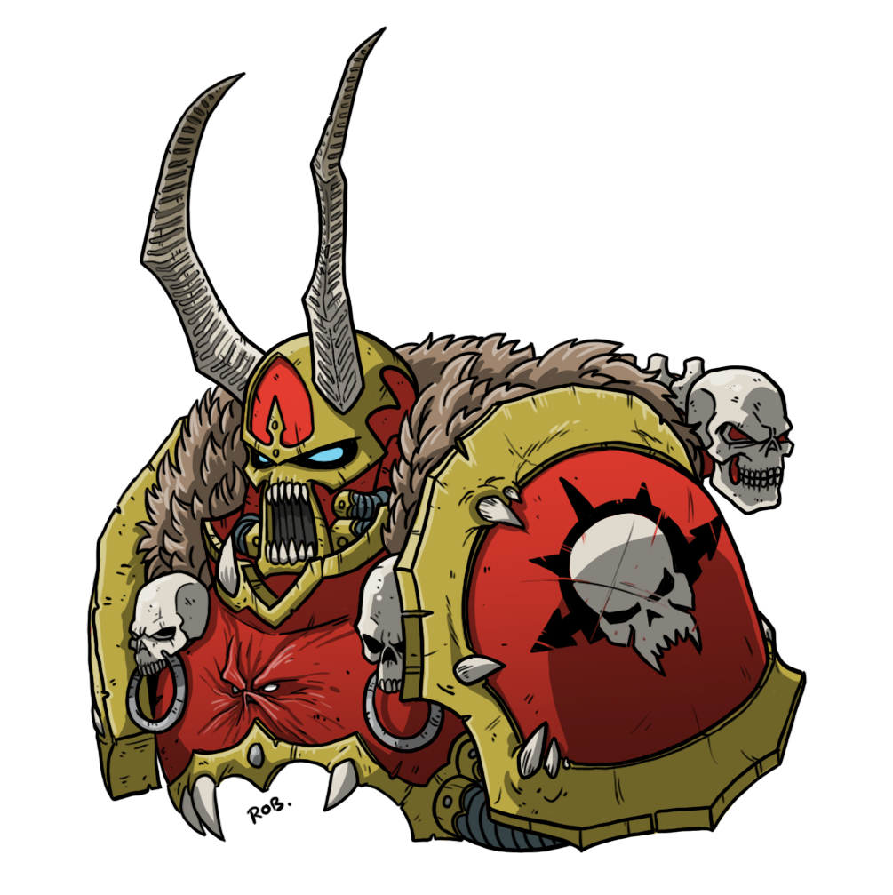 So Chapter Master Kranon became Kranon the Relentless, perpetually driving his warband onward to new slaughter to silence the raving voices in their heads. The warband itself would become known for being Haunted - not just mentally, but physically as well. Strange phenomenon would occur when the Crimson Slaughter were near - skies bleed, walls melt, and strange ghosts and apparitions emerge from the shadows, and people are assailed with horrific visions and voices of their own.