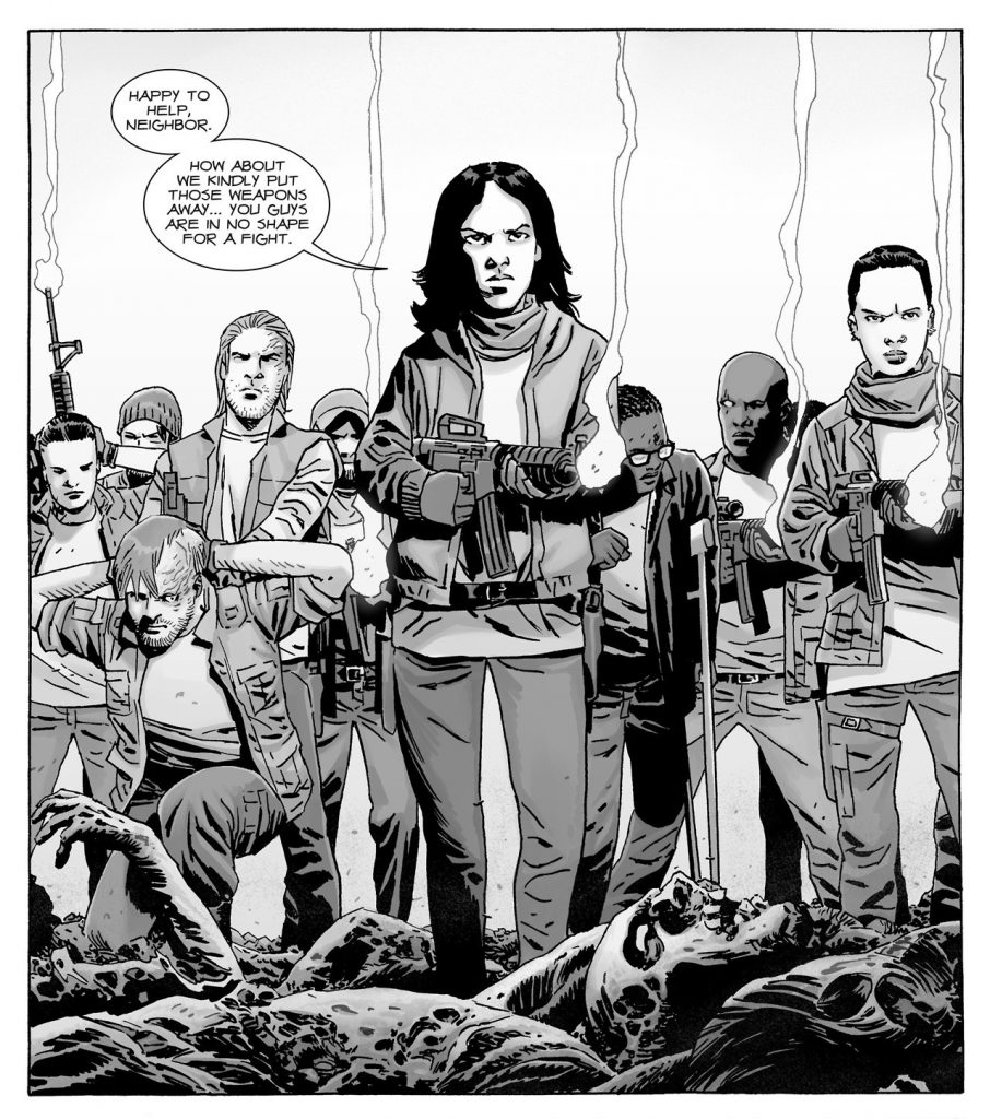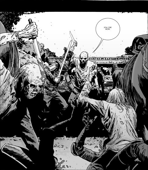 [Editor's Note: the titular one!]. The fact that they put up an intense fight only goes to show how well equipped and numerous the Saviors really are. But the thing holding it all together is Negan and he has made enemies within his own ranks. After being betrayed by one of his lieutnants and almost killed by Rick, the Saviors give up and the war is won by the communities.