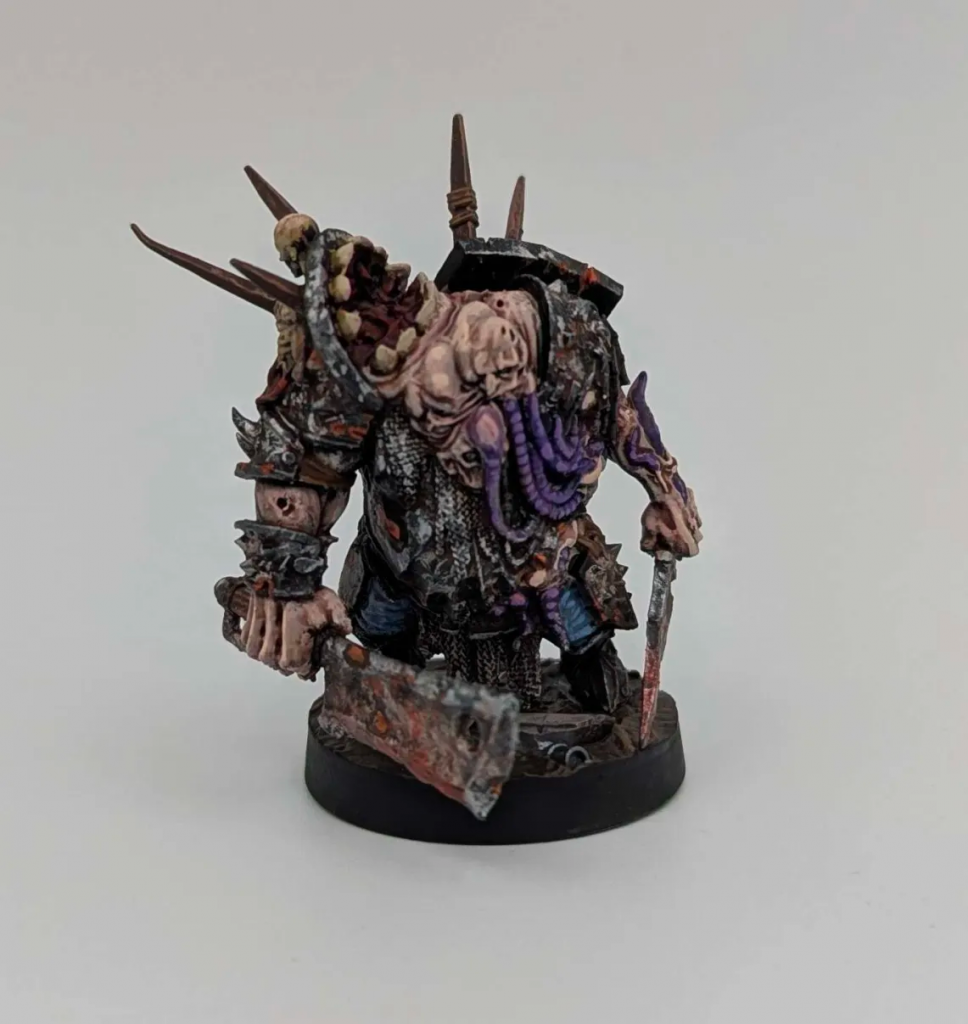 The Lords of Tumors, sometimes referred to as Great Maws, are the hulking leaders of many Great Hunger warbands. They exist with a very particular mission; the consumption of other Great Hunger warbands. While this may seem counter to the goal of spreading the Great Hunger virus far and wide, they view it as a holy ritual for the glory of Beelzebub. Every single thought that goes through their heads surrounds this gnawing need to feed. Despite all this, they are seen as holy icons among the afflicted.