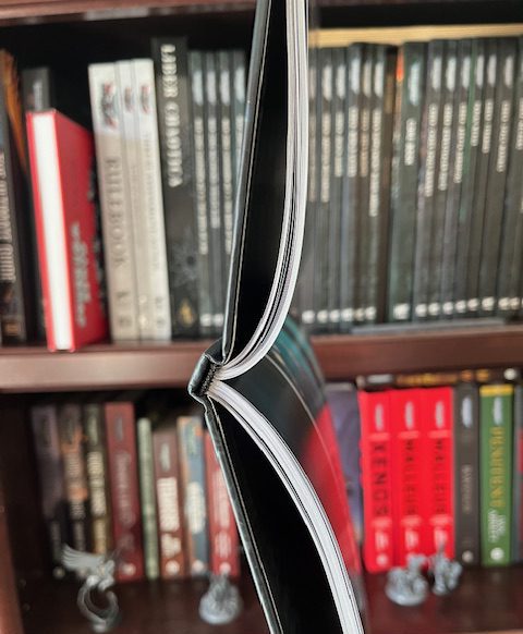 On the left side of the book is the lore content, the right is the tabletop rules. There is a LOT here. Image credit: Jay Kirkman