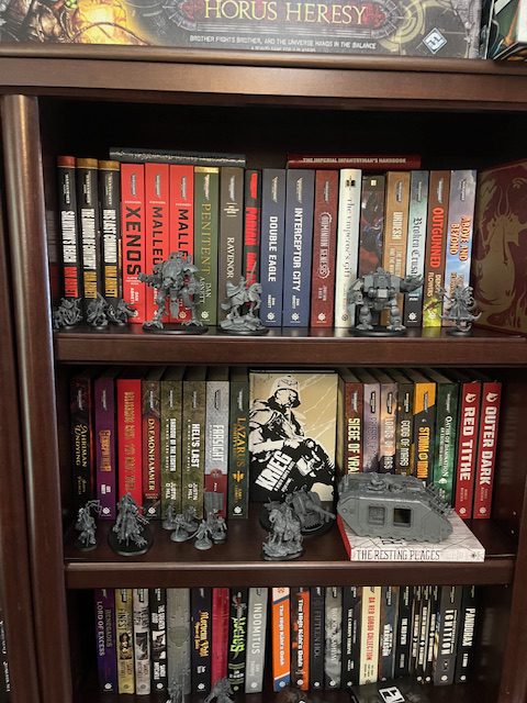 1, I found the next-best thing was celebrating their appearances in the Black Library. It was an easy jump from that into displaying the models in the bookcases themselves, though even that soon started to get a bit overcrowded as I settled into a #HobbyStreak that lasted the better part of the year.