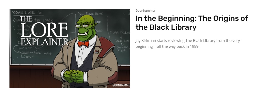 I didn’t have a ton of material published by the time March rolled around, but clearly the Goon Top Brass and I had a similar vision for how we wanted things to grow on the site. When I pitched starting up a weekly column for all things Black Library, the green light was immediate.