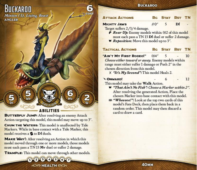through the thing that just hit them and force a test to avoid damage, but mostly you don't want them in melee. Ain't My First Rodeo is a cute action, with an S tier trigger name, but giving your opponent the choice means that it's hard to see it really working out. And while they can drag Tide Markers around, they can't