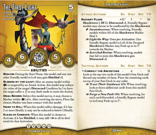 The other core mechanic of the crew is the Ideal upgrade. You attach it at the start of the game if you have any Bygone models in your crew - and, like the Configuration, the upgrade is attached to