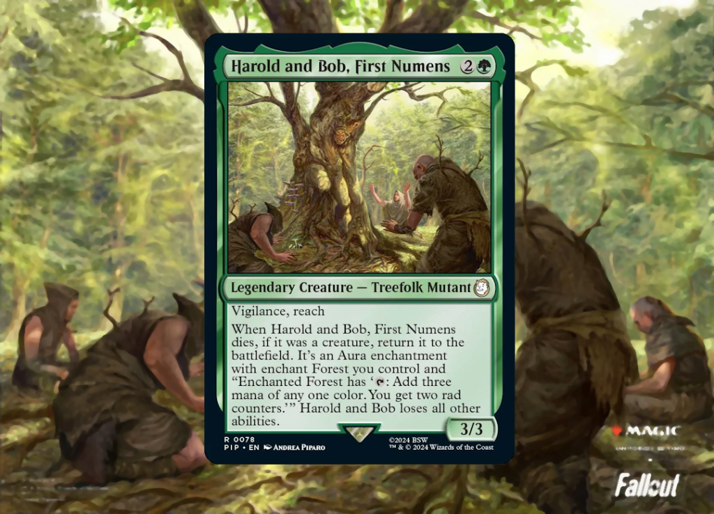Harold and Bob made their debut in Magic's Fallout set, within The Wise Mothman's precon. At first glance, this parasitic FEV-tree is unremarkable, with a decent enough profile for swinging or blocking in the early game, and some truly odd text on its death trigger. If you can manage to burn the metaphorical oasis, wink wink, you're rewarded with the ability to make a Forest you control tap for 3 mana and provide 2 rad counters. This is no slouch, given the fact that it's essentially adding an extra 2 mana with every tap, and even without shenanigans this can quickly generate a huge mana advantage during the course of a normal game. H&B also bear a resemblance to another card that's quite tough to cast outside of Monogreen, the once-staple in 60 card formats, Old-Growth Troll; these are each cards you want to kill exactly once, and thus don't want to go all-in on an aristocrats strategy, but instead play a select few cards that kill a creature for added effect, which I'll cover later on.