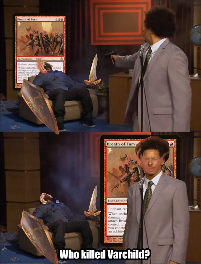 Breath of Fury is the most interesting extra combat spell however, as if we can get it going, Breath allows us to take, attack, sac, repeat until our opponents are dead or out of Creatures. Again, we're not looking for infinite, but merely 'enough'.