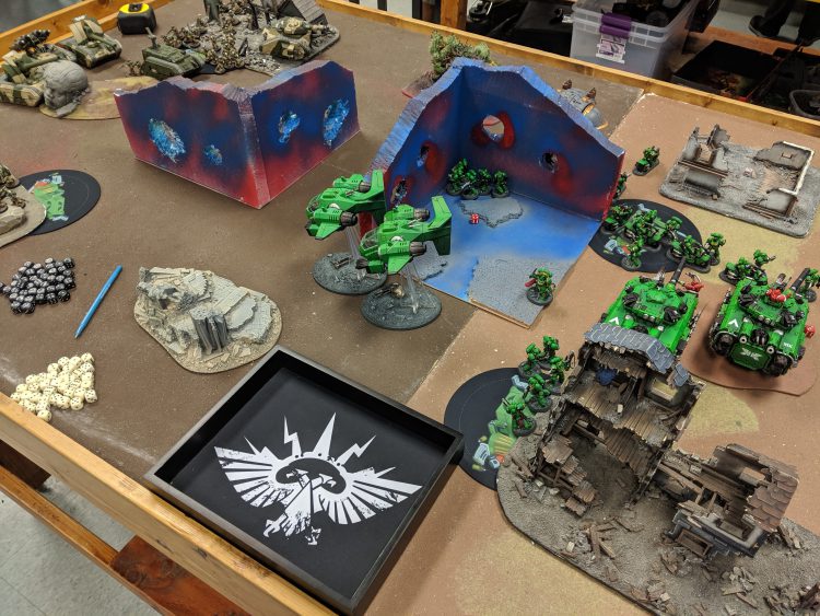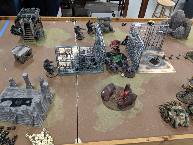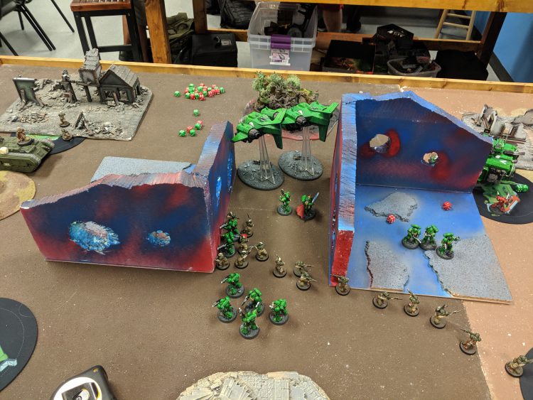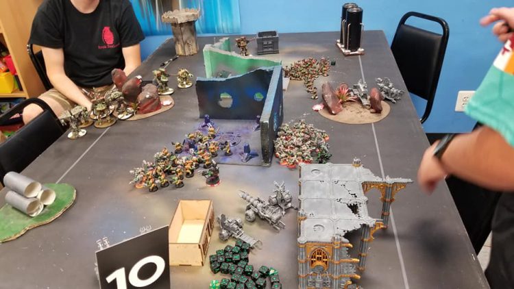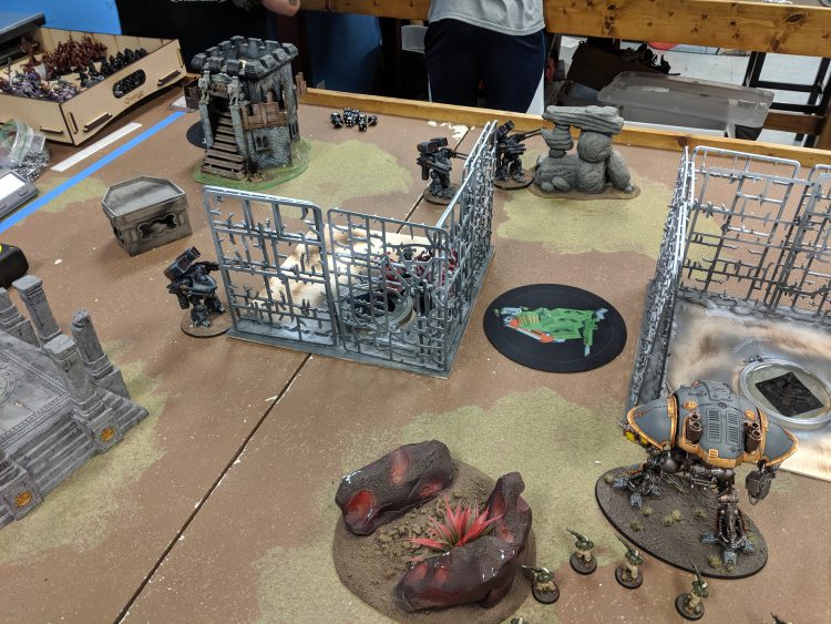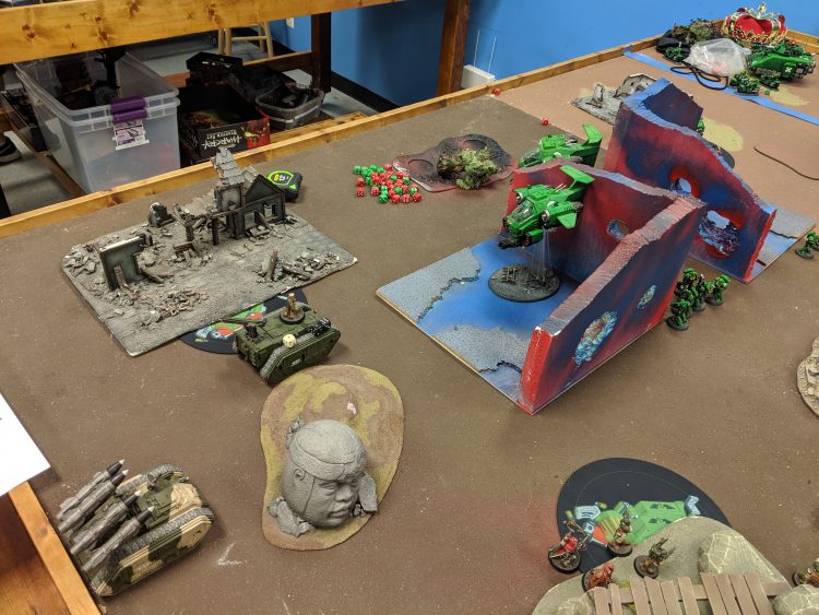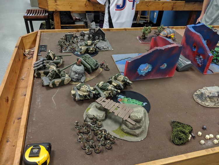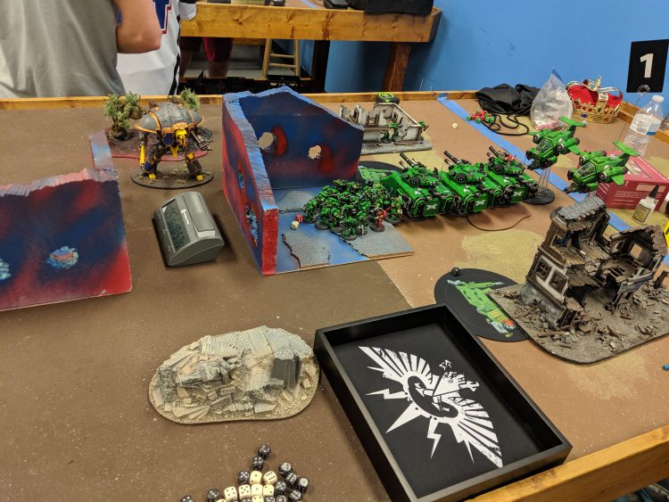 Alex did everything right this game. We were talking about it afterwards, neither one of use could identify a clear area where either of us misplayed. I felt like I only took the risks I needed to to get in the game, and they just didn't pan out. He agreed that if I downed a second Repulsor on the top of turn 1, it would've been a VERY different game. But hey, sometimes it be like that. I always love when I get to play Alex, he's a legit great player and I personally can't wait for him to run rampant on the greater Maryland meta with his new Iron Hands Repulsors when the supplement comes out. It was the tightest game of the day with some really close and excited moments as top table should be.