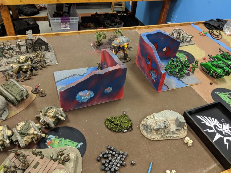 *Editor's Note: The NOVA L is a large, L-shaped piece of terrain that blocks line of sight. Usually, two are placed in the middle of the battlefield mirroring each other. For an example of this, see the photo of a battle below.