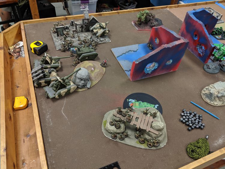 Turn 2 goes about as you'd expect, I power-wash everything I see on the board and 1.5 of the Doritos with artillery and Tank Commanders.