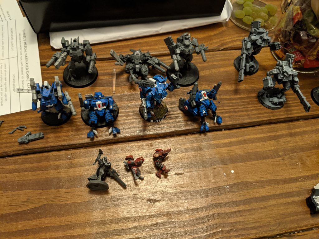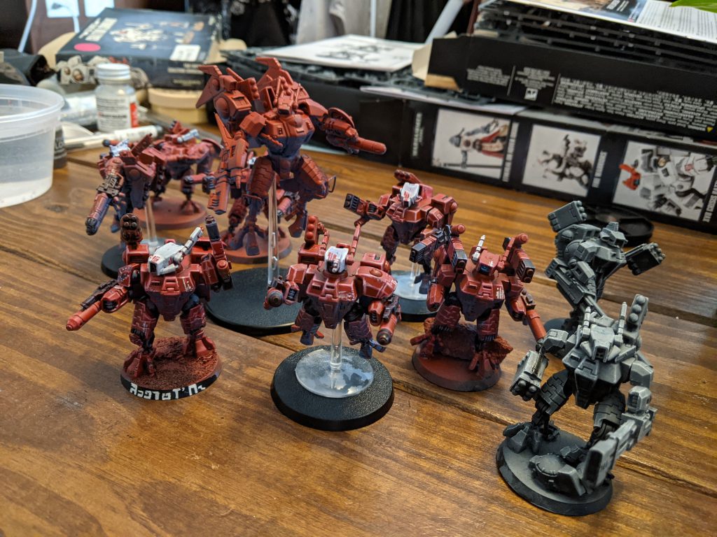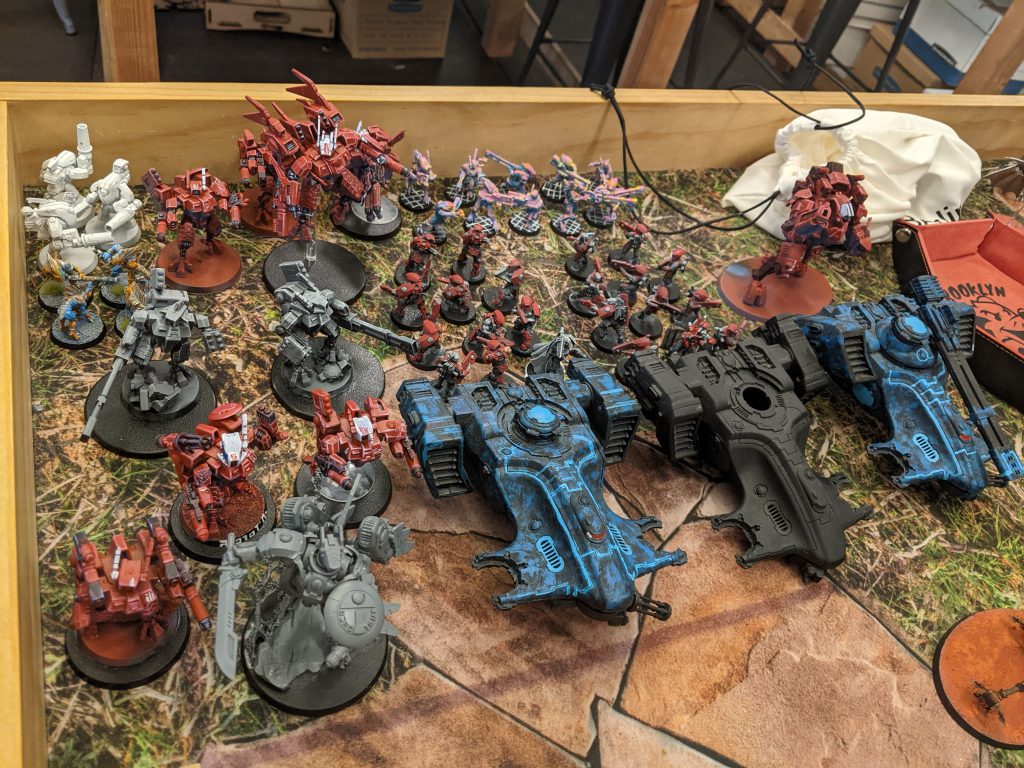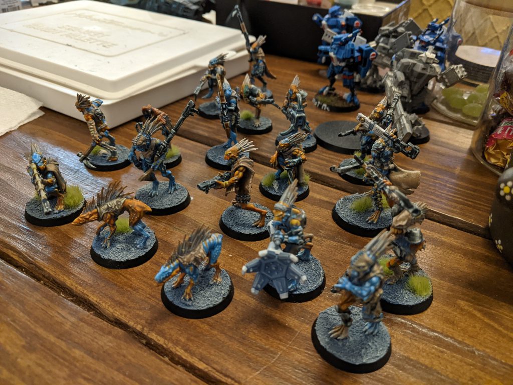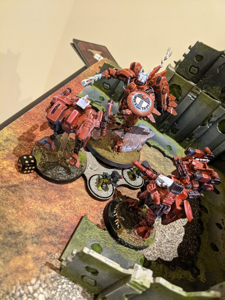 Having some larger models in the mix did allow me to work in some edge highlighting practice that I haven’t been able to fit into my Kill Team hobbying time. Farsight and Coldstar both came together very nicely. Having a good scheme helped keep my interest during the painting and later the playing process.