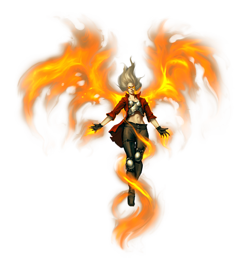 Of all the Masters touched by the Burning Man's power, Anasalea Kaeris is probably the most impressive. Cornered by Guild forces due to a well-laid ambush, Kaeris was on the verge of being apprehended and sentenced to death. In her desperation, she called out for help... and help came. It's not clear whether she understands where her new power come from, but it's also not clear she'd care if she did. Her golden winged harness has melted, as has any vestige of control... she's Reborn now, and woe betide those who stand in her way.