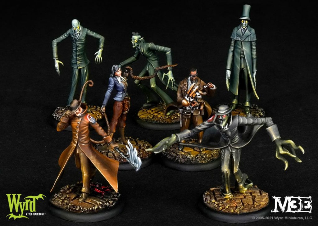 English Ivan, Mr. Mordrake, Eva Havenhand, Gibson DeWitt, and three Daevas. Credit: Wyrd Games