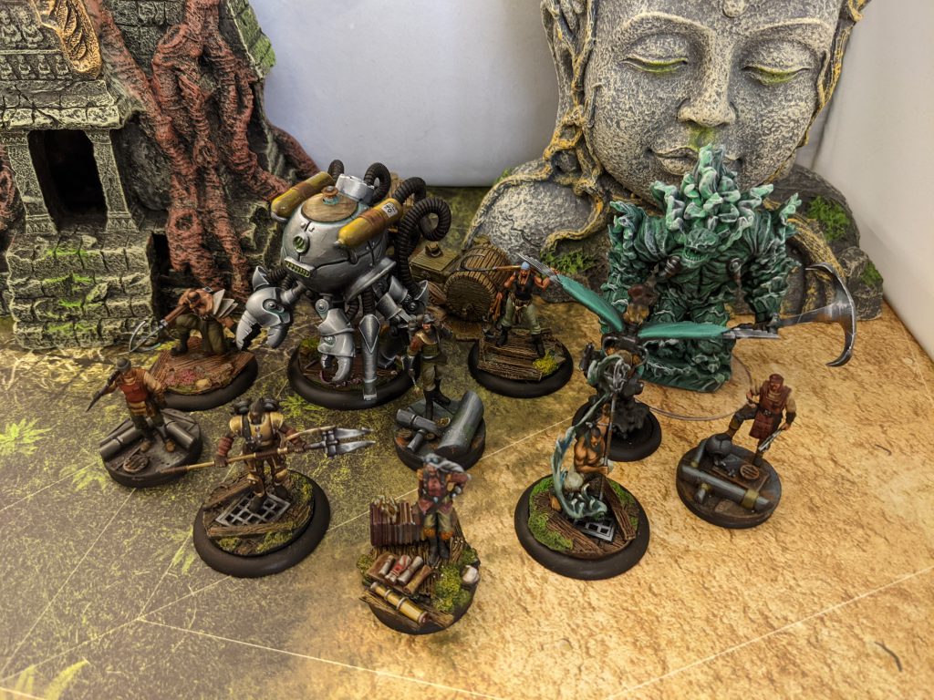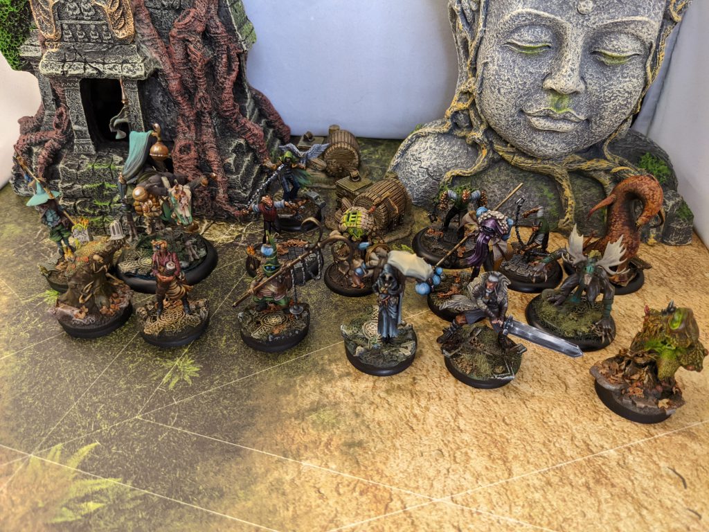 L->R: Aua Warrior, Kett, Tiri, Oro Boro (in the back), 2x Aua Warrior. Credit: Wyrd Games