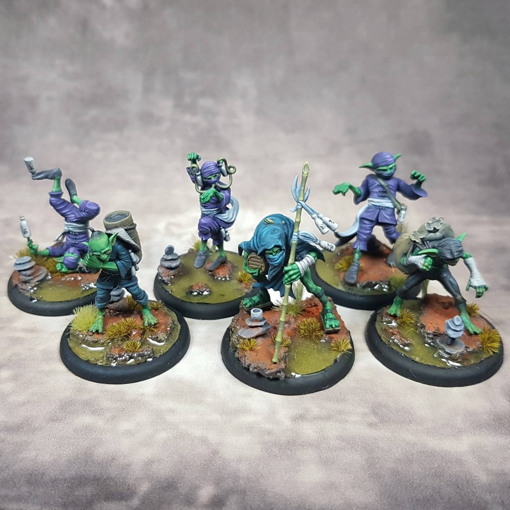 The Tri-Chi crew, unsurprisingly, has a style of fighting that focuses on intoxication, represented in-game by Poison Tokens. Poison heals them rather than damaging them, and they can spend their Poison tokens for all kinds of bonuses. Once opponents start getting hammered, they're putty in the Brewmaster's hands-- he can command drunken foes to do his bidding, push them around, or just burn out their livers with concentrated alcohol poisoning. The Brewmaster's title form focuses on drunken kung-fu, empowering his models to spend their Poison tokens to deliver intoxicated haymakers and potent, inebriated roundhouse kicks.