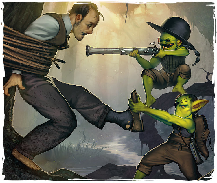 Gremlins have taken to all things human with surprising speed. Rusty boomsticks abound in the Bayou, along with stolen aethervox radios and the products of fine human haberdashery. They're simple creatures, and in some ways quite innocent, but they're possessed of a feral cunning no human should underestimate. Gremlins know full well what the humans traipsing into their Bayou are coming for, and they're not at all keen to see their homes pillaged and robbed. Nor are they interested in the types of things that unscrupulous humans can bribe them with: gremlins don't want power, or fame, and they only need enough riches to keep them in gunpowder and booze, both of which are easier to steal than buy. And if you don't have anything to offer a gremlin, you better watch your back. Or at least your ankles. Nekima may think Malifaux is OURS!, but the Bayou belongs to the gremlins.
