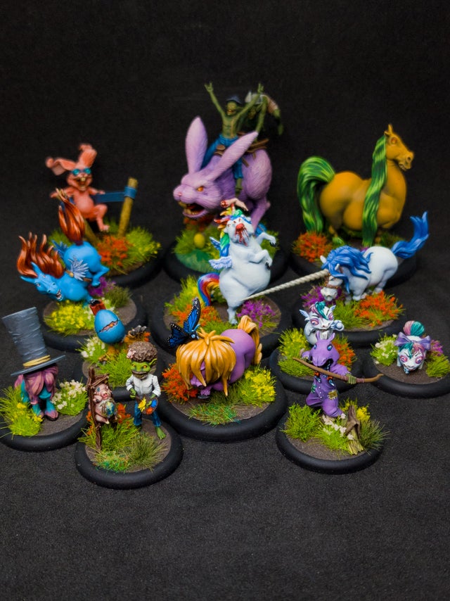 L-R, Back-front: Eggapult, War Wabbit, the Night Mare, a Gift Horse, a Sparkle Steed, another Gift Horse, Lil' Sebastian, a Daredeviled Egg, another Gift Horse, two Minicorns, Ross Jebsen and Rocinante Benoit. Credit: paintwatersommelier on Instagram