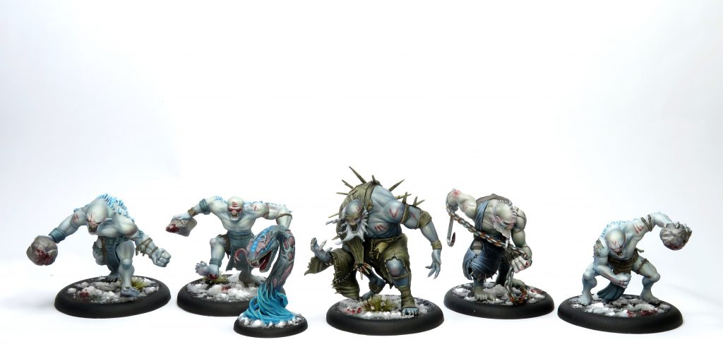 L-R: Two Gigants, the Primordial Magic, Euripedes, Thoon, another Gigant. Credit: Wyrd Games