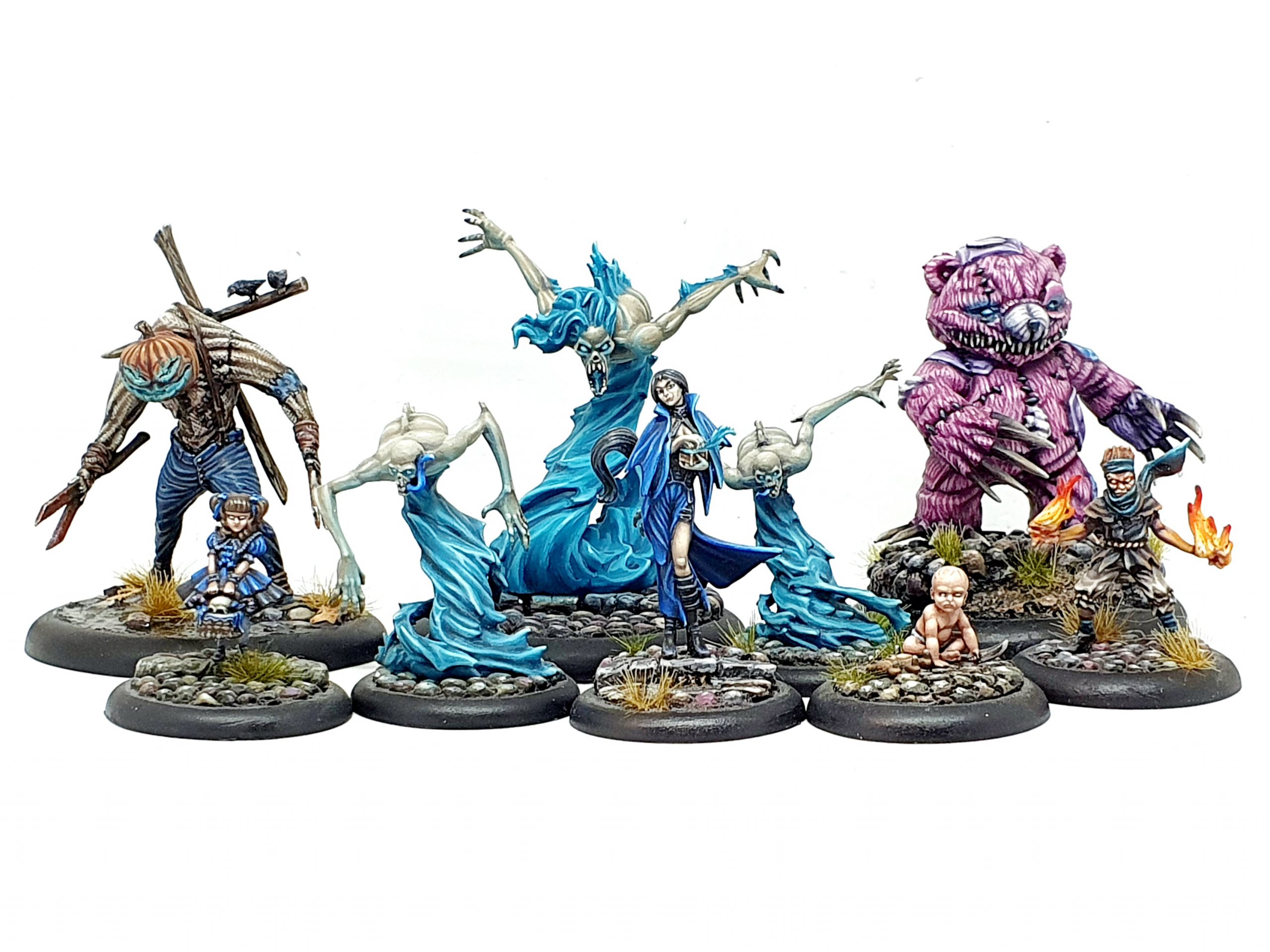 L->R: 2x Shorebound Sentinels, Silent Siren, the Colony, Urchin, Silken King, Shorebound Sentinel. Credit: Wyrd Games