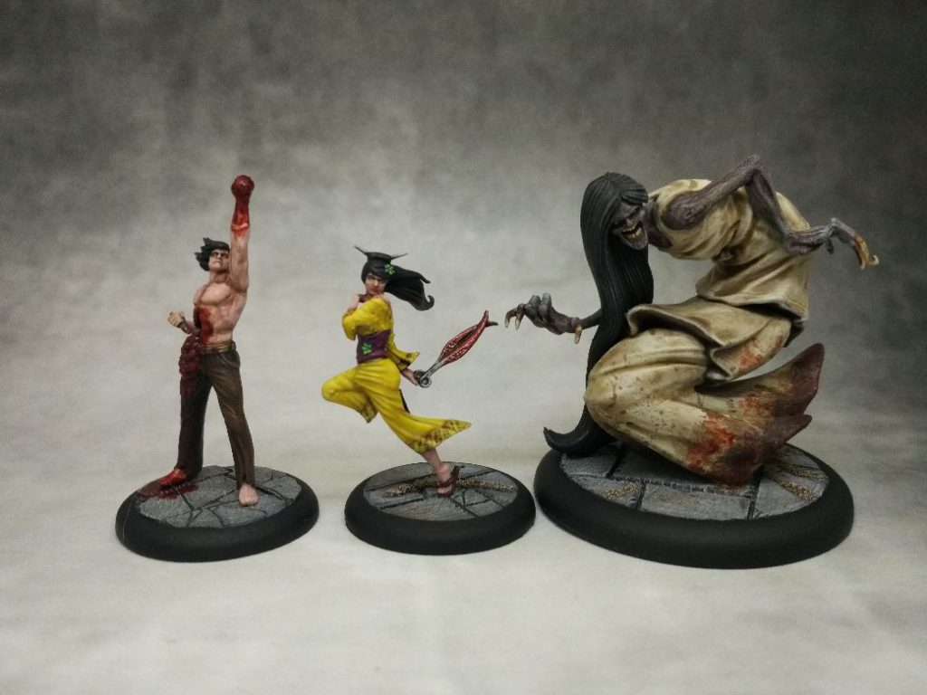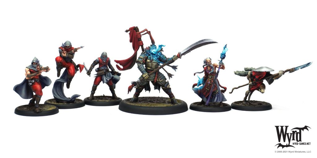 Yan Lo, the Soul Porter, Izamu the Armor, and three Gokudo. Credit: Wyrd Games
