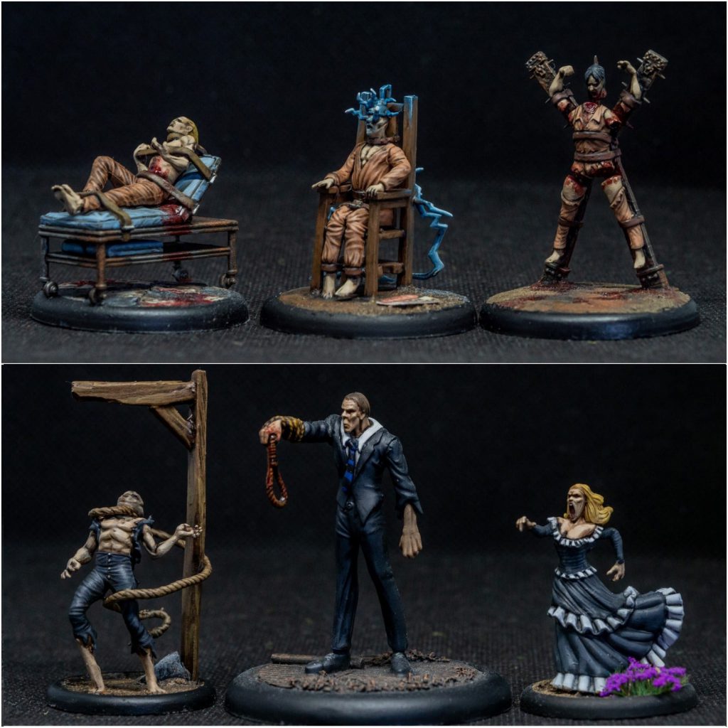 Top: three Guilty. Bottom, L-R: Jack Daw, Montresor, and Lady Ligeia. Credit: Dan Kirby Painting Sessions