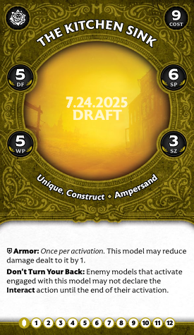 The Kitchen Sink is a bit of a Swiss army knife... or, I guess, one of those weird kitchen implements that nobody can remember buying. Bad defensive stats but lots of health mean that if you've got the healing support it should stick around for a little while, especially with Armor, and Don't Turn Your Back is just a strong rule on everyone who has it (especially given how strong Don't Mind Me is this edition).