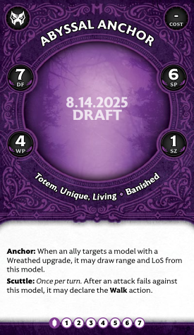 The Anchor is an odd totem, with 7 Df but only 4 Wp - which will prove a serious liability in some matchups. When an attack fails against it, it can Scuttle, so there's some incentive for your opponent not to casually swing, but most Wp-targeted attacks against it