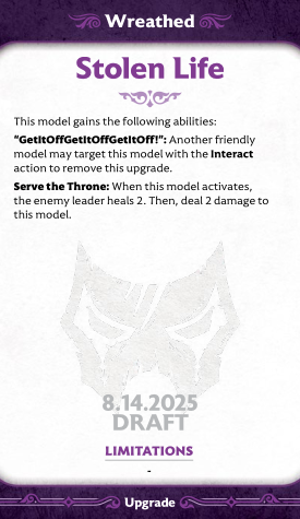 So what's a Wreathed upgrade? Well, there are three of them. They all share the "GetItOffGetItOffGetItOff!" rule, which lets your opponent's