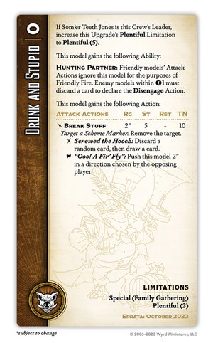 The only other change (besides the general ones) is that they now have Break Stuff as a second Bonus Action, which lets them remove a Scheme Marker and is sometimes worth a 3" push or a Focus. I still think that overall this would be a pretty big nerf (losing access to Soulstones when you have a Crit Strike gun is pretty rough), except that Big Hat minions are