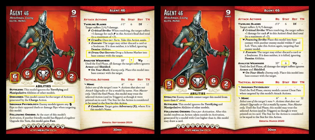 lot tougher now and that ability was pretty uninteractive anyways. And his Mimic has gained an amusing little trigger to make enemies Adversary (Agent 46), which is not something you will ever rely on but will be fun when it happens.