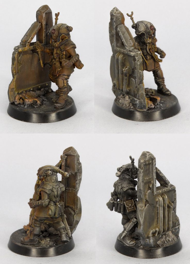strongly encourages conversions and experimentation, so I started with a commitment to not use a single part of an actual assassin kit. I ended up with a very interesting model that I painted with a twist. I used browns and oranges layered over a textured grey base to depict a Culexus Assassin skulking near firelight. I think it adequately captured the ruddy, monochrome, and