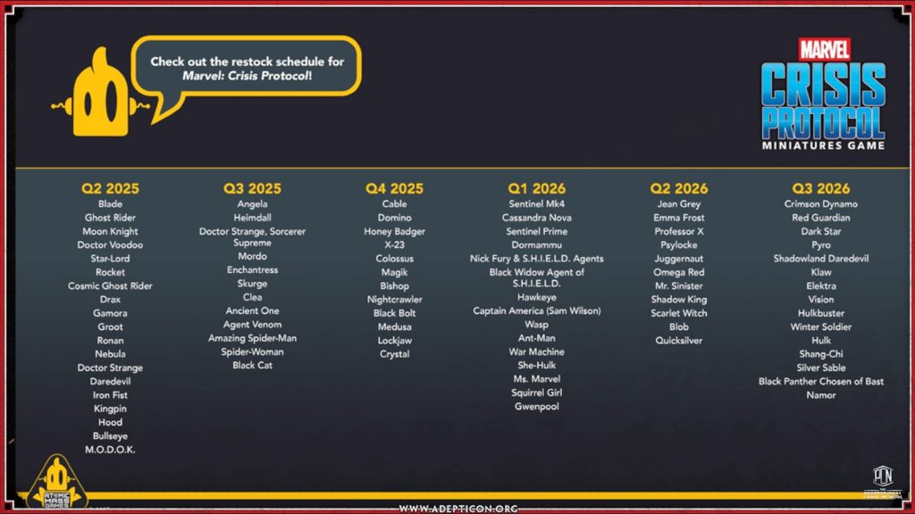 I’ve been predicting a Fantastic Four tease at every event for a while now, and I’m not going to stop now. There’s been nothing but radio silence about Marvel’s First Family (and associated characters like Doctor Doom), and while some rights or contract issues may be holding them back, there’s always the chance that they’ll find their way onto the tabletop one of these years. If they are teased, a simple verbal tease or quick on-screen logo would make for a great showstopper to end Ministravaganza 2025.
