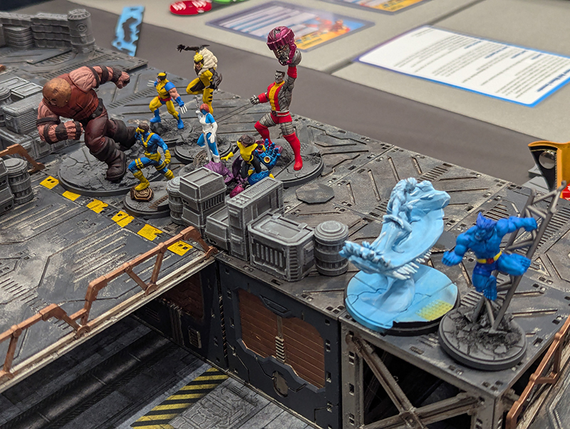 The Crisis Team is composed of two Squads of a maximum Threat Value of 18 each. Since this was a convention event, we had four players split into two teams, essentially creating 4 squads of 9 Threat each. This wasn't exact, though, as some folks had more points worth of characters and some had less. We were also limited to X-Men and Brotherhood of Mutants characters, which helped to sell the theme quite a bit, and I enjoyed that - I live and die by theme when making my own Rosters. As mentioned before, I played this scenario twice during Adepticon. The first time we were limited to models chosen by the event organizer, Coop. The second game, we were allowed to sub in different X-Men or Brotherhood characters if we had them. We also didn't have access to Team Tactics cards, though we did use Cyclops' leadership ability during the games.