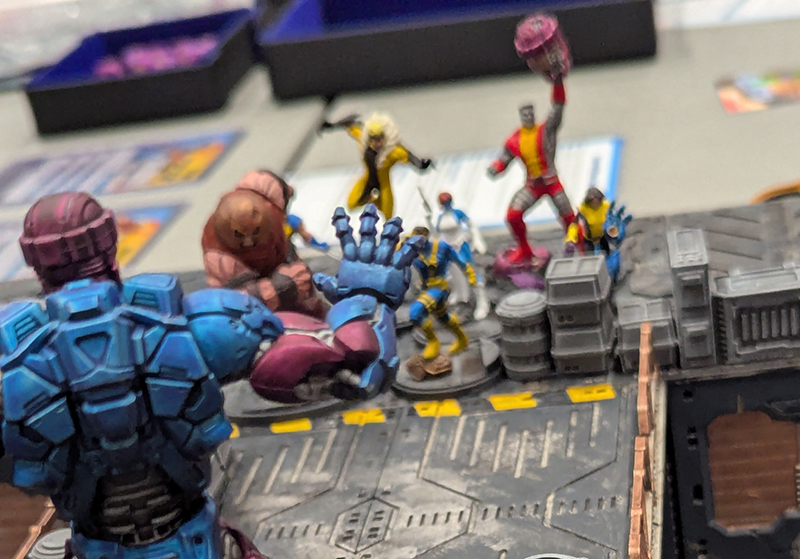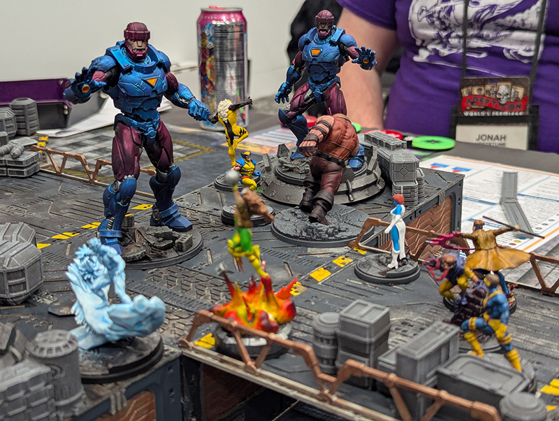 In this scenario, Mastermold is represented by a giant custom Sentinel that is seated at one end of the board. The heroes traverse raised platforms that are flanked by two Fabrication Portals, where Sentinels spawn into the game, while a Sentinel Prime starts in the middle of the board to serve as a speed bump for the heroes to deal with. The heroes start at the other end of the board and have to fight their way to reach Mastermold. Meanwhile, new Sentinels spawn at the end of each round. I played this scenario twice while at Adepticon, once as one of my paid events and a second alongside fellow Goonhammerer, Raf Cordero, in a private game session.