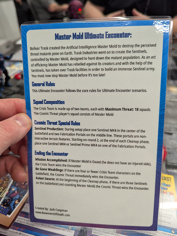 This year, at Adepticon, the Basement of Death crew put on a custom Ultimate Encounter for Marvel: Crisis Protocol, called Mastermold. In this encounter, the X-Men and the Brotherhood of Evil Mutants must band together in order to stop Mastermold from creating an army of Sentinels, which will decimate mutant-kind and bring about a dystopian future.