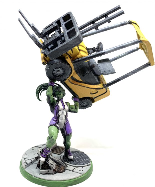 Gamma Transfusion also lets her advance Short toward the attacker when she gets injured, which is very nice on a 50mm base. She-Hulk has three powers that love Steve’s cost reduction, but she could also benefit from the heal and advance under Sam to move her even farther. Be careful with bodyguarding though as she’s less resistant to Physical damage than Energy, which is a little unexpected but nice.