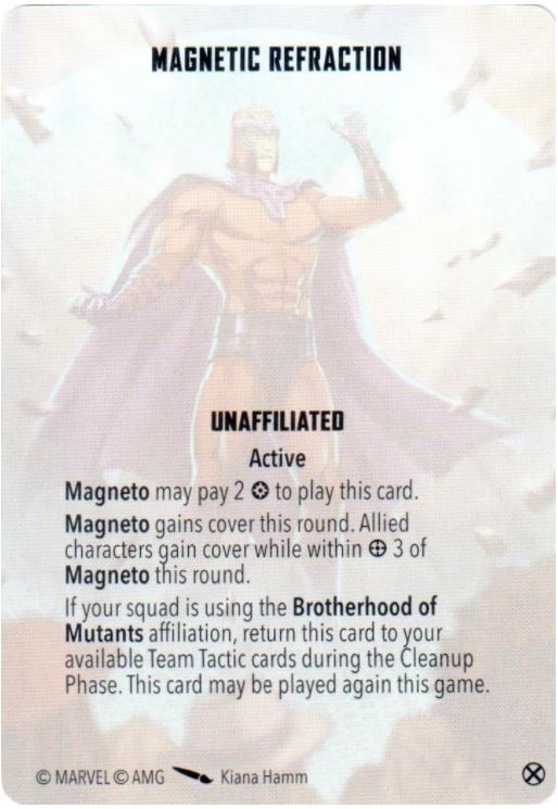 On similar lines to Psychic Fortress, Magneto's Magnetic Refraction does the same thing but in a smaller bubble and for a lower cost. It might feel bad that you're getting the strictly-worse version because you're not running Brotherhood, but if you can get over that, it's still fine. Grade: B-