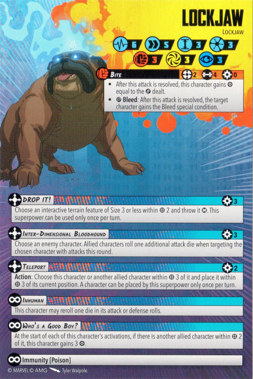 really good. Lockjaw already likes hunting in packs for extra Power (see below), and now he comes with his own little Field Dressing: except that it works for characters being KO'd rather than Dazed. Put both in your eight and watch the world burn.