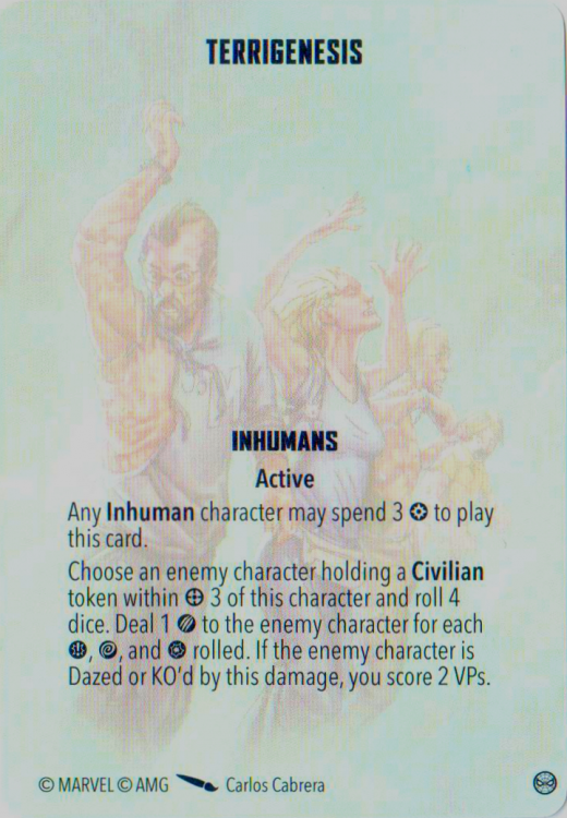 What I love about this is that only Inhuman characters benefit - this is an incentive to build a thematic roster, and something I'd like to see more of.